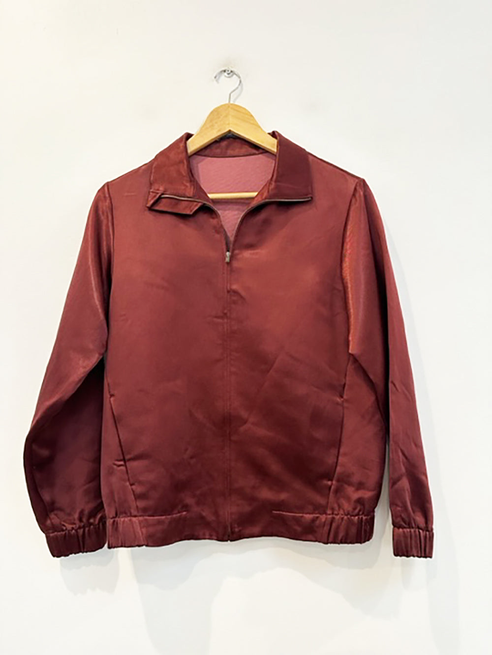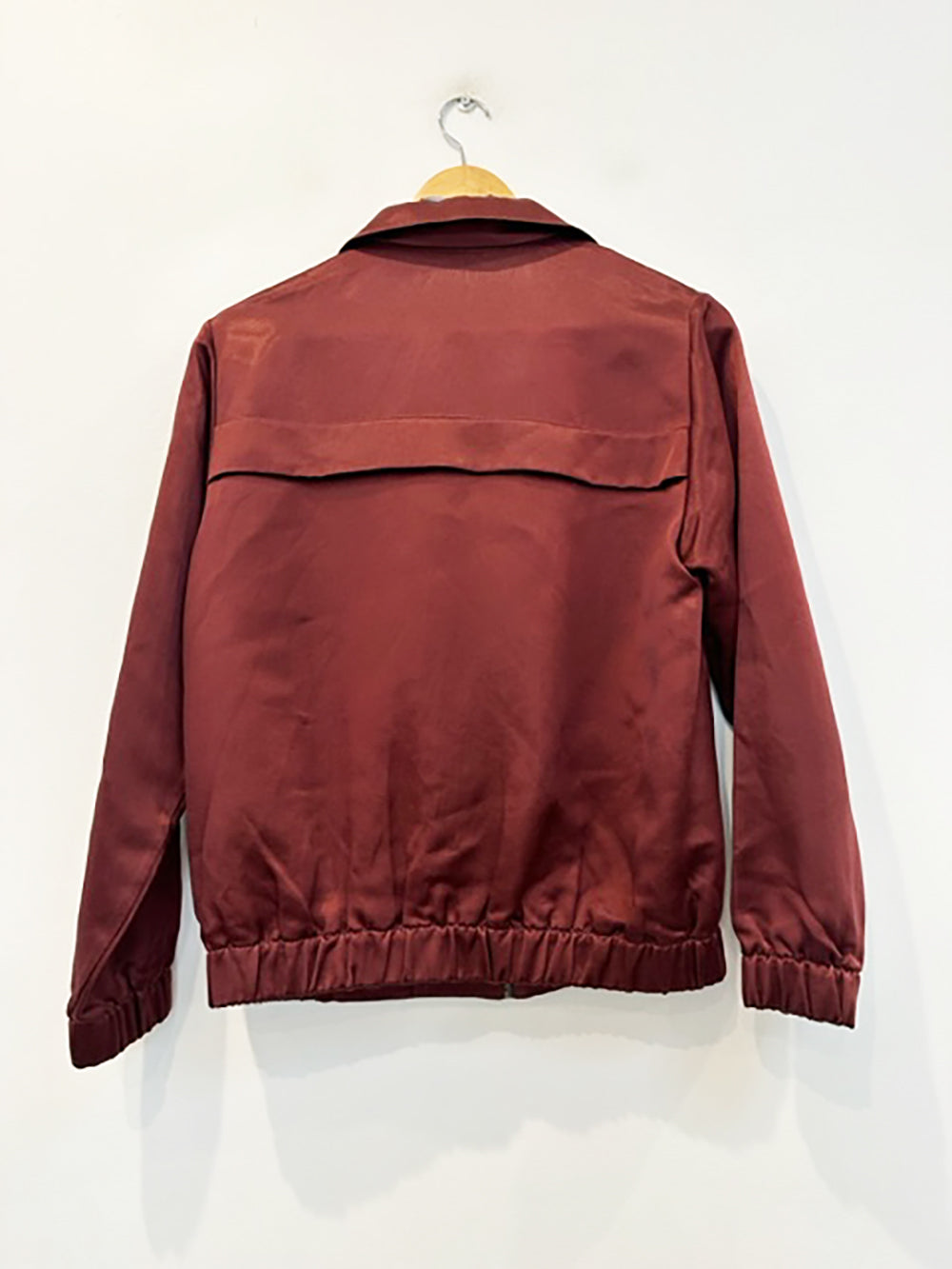 A chic plum purple satin zip front jacket from designer label Jac + Jack. Elastic waistband. Perfect preloved condition!