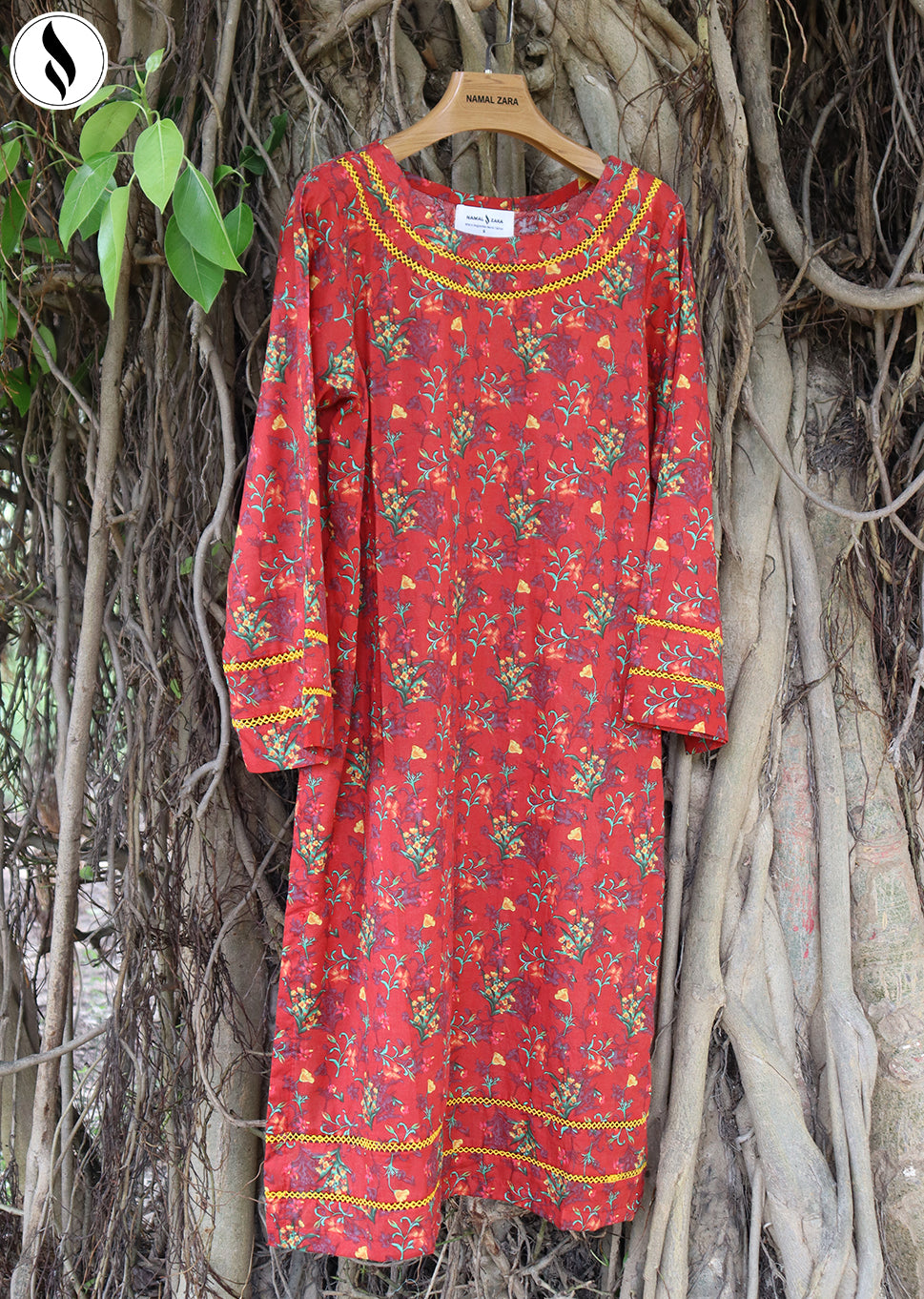 affordable luxury nzsc 823 stiched 2 piece dark orange with golden lace co ord set lawndc going fast