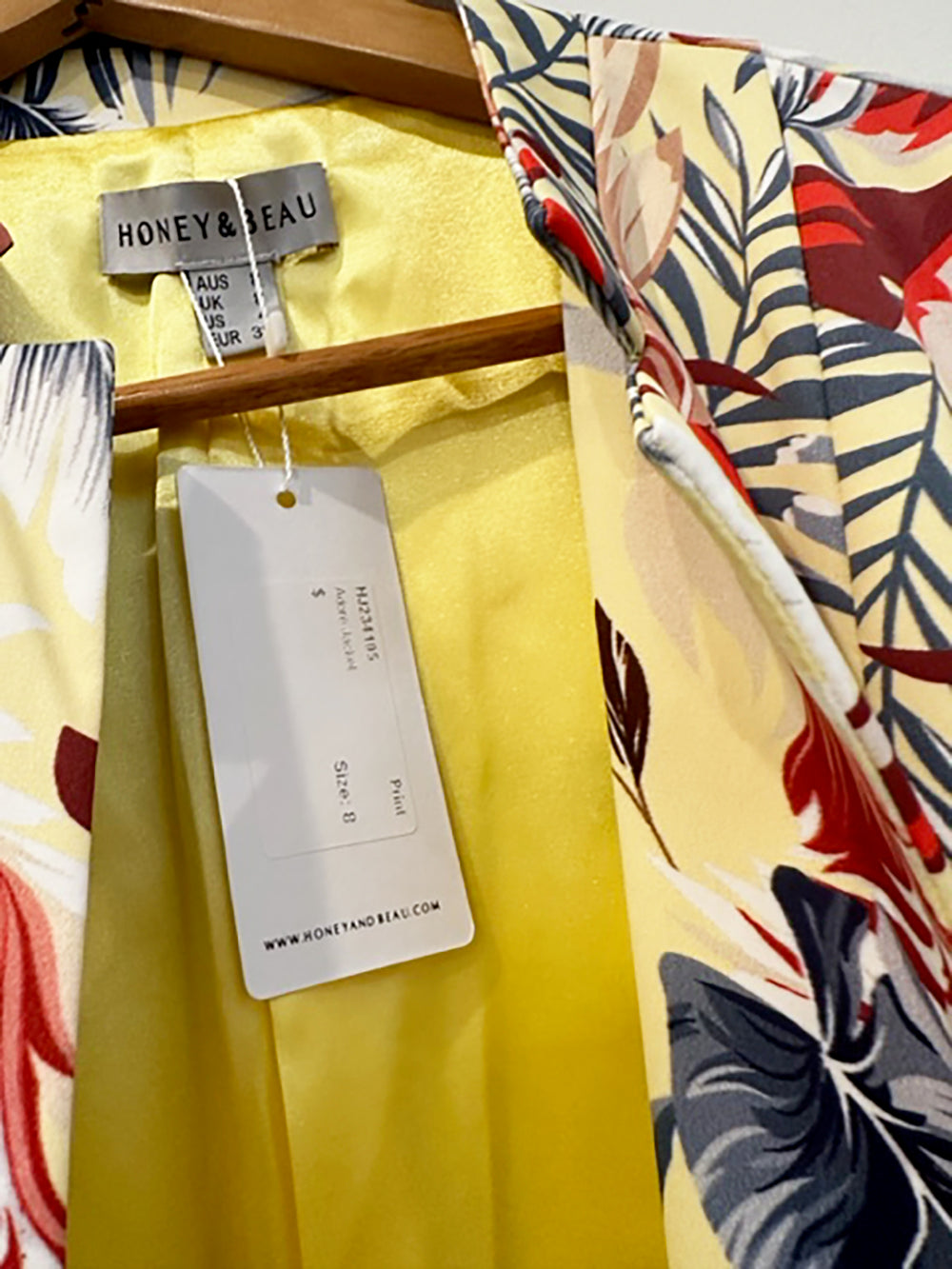 A chic BRAND NEW floral jacket from Honey & Beau. Cool detailing and fully lined. The style is the ‘Adore’ jacket.