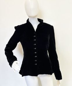 A stunning super RARE velvet jacket from Leonie Sydney. Lush black velvet with chic jewel subtle button front. Fully lined. Perfect preloved condition.