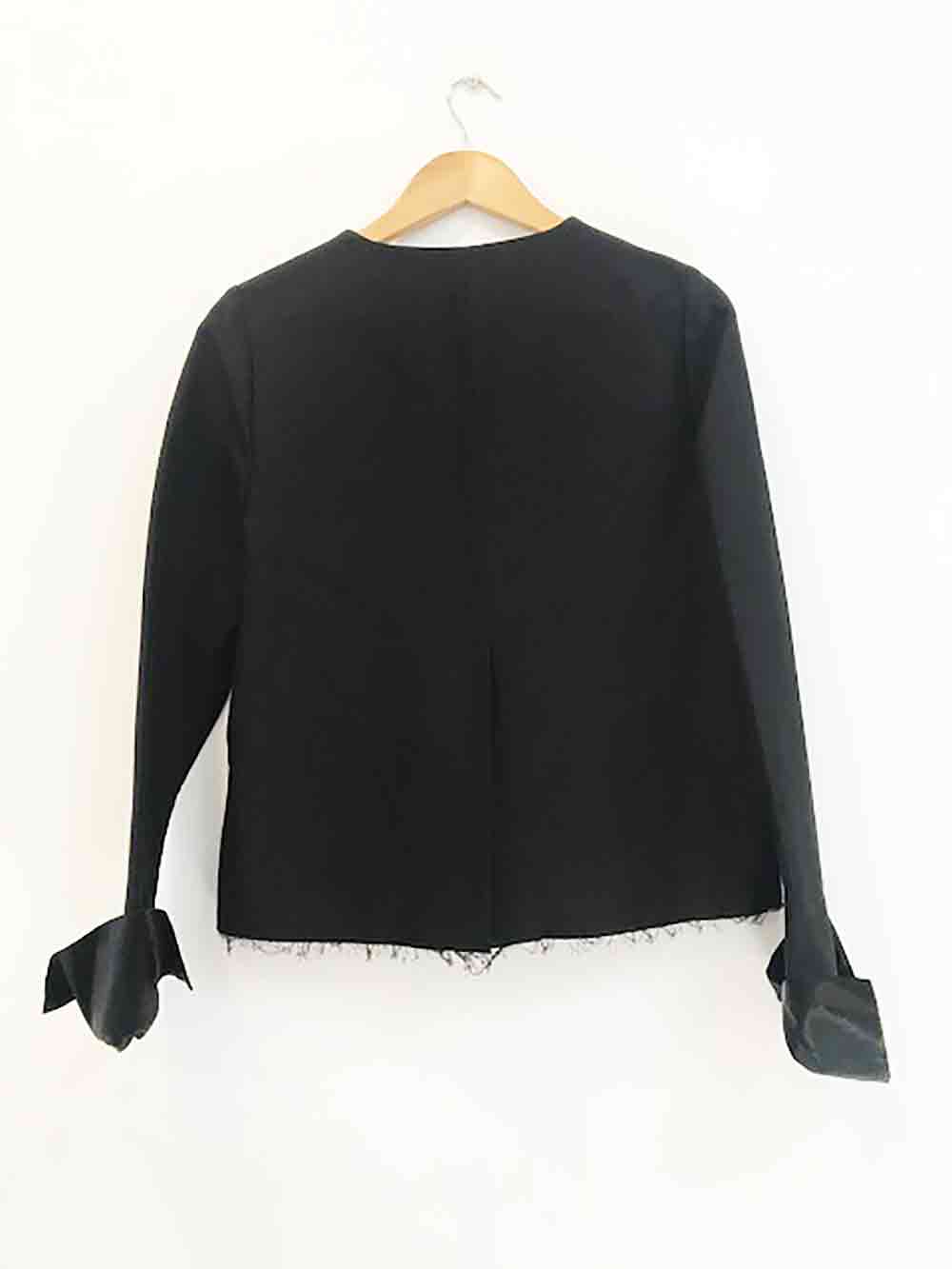 Just amazing brand new with tags (RRP $$1995.00 US) ‘Cotton Cady’ style black jacket. This jacket is a timeless piece and investment for anyone!! It features a lovely boxy cut with hidden front buttons which are a cool bendy rubber in black (also comes with a spare), collarless style and very cool satin cuff detail. The jacket is a medium weight woven cotton and has a raw bottom hem. Don’t miss this piece!!