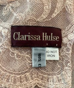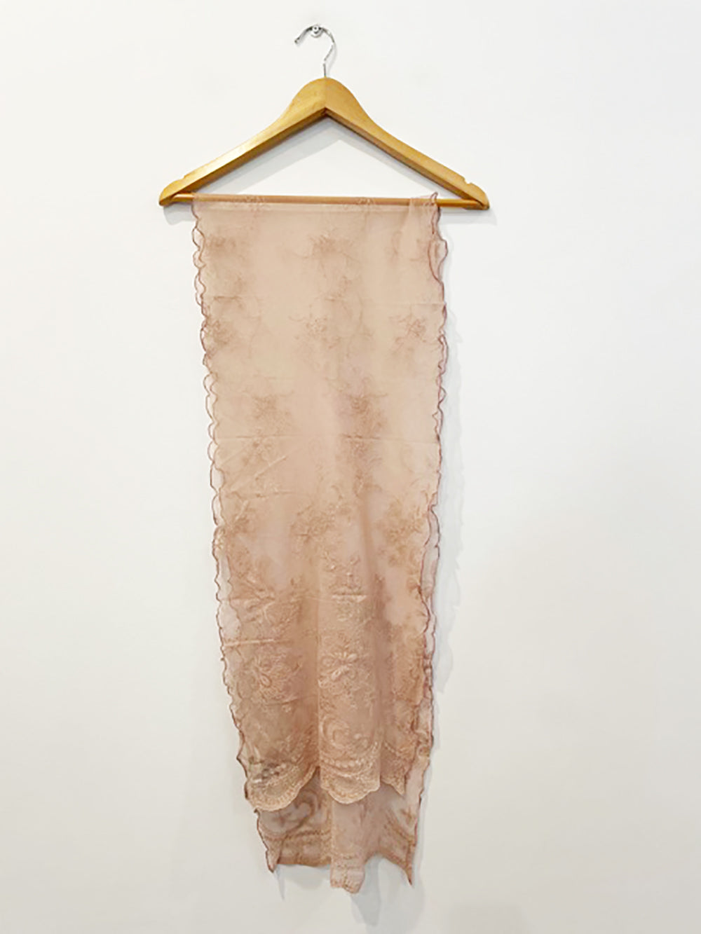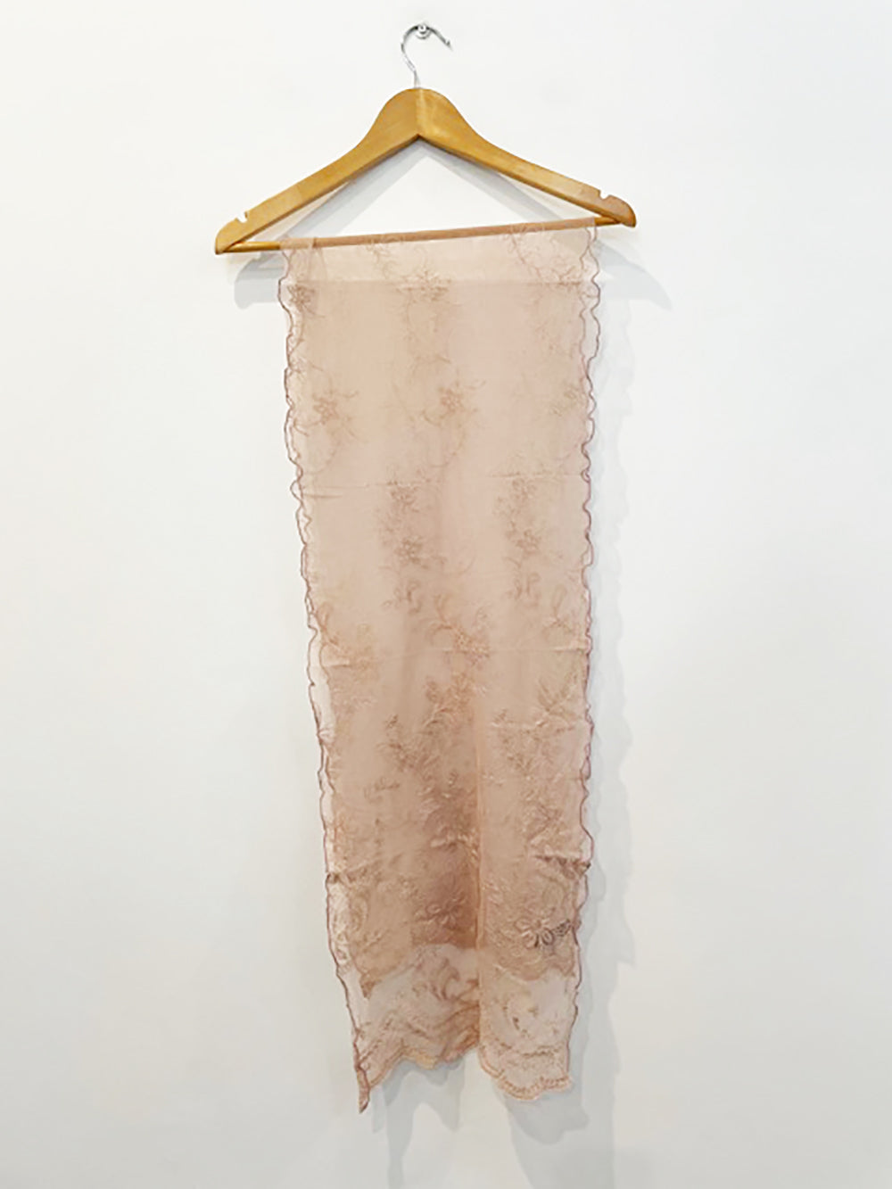 A stunning pink cotton lace long rectangle scarf from designer label Clarissa Hulse. A soft pink hue in delicate lace. This has be worn once and is perfect!