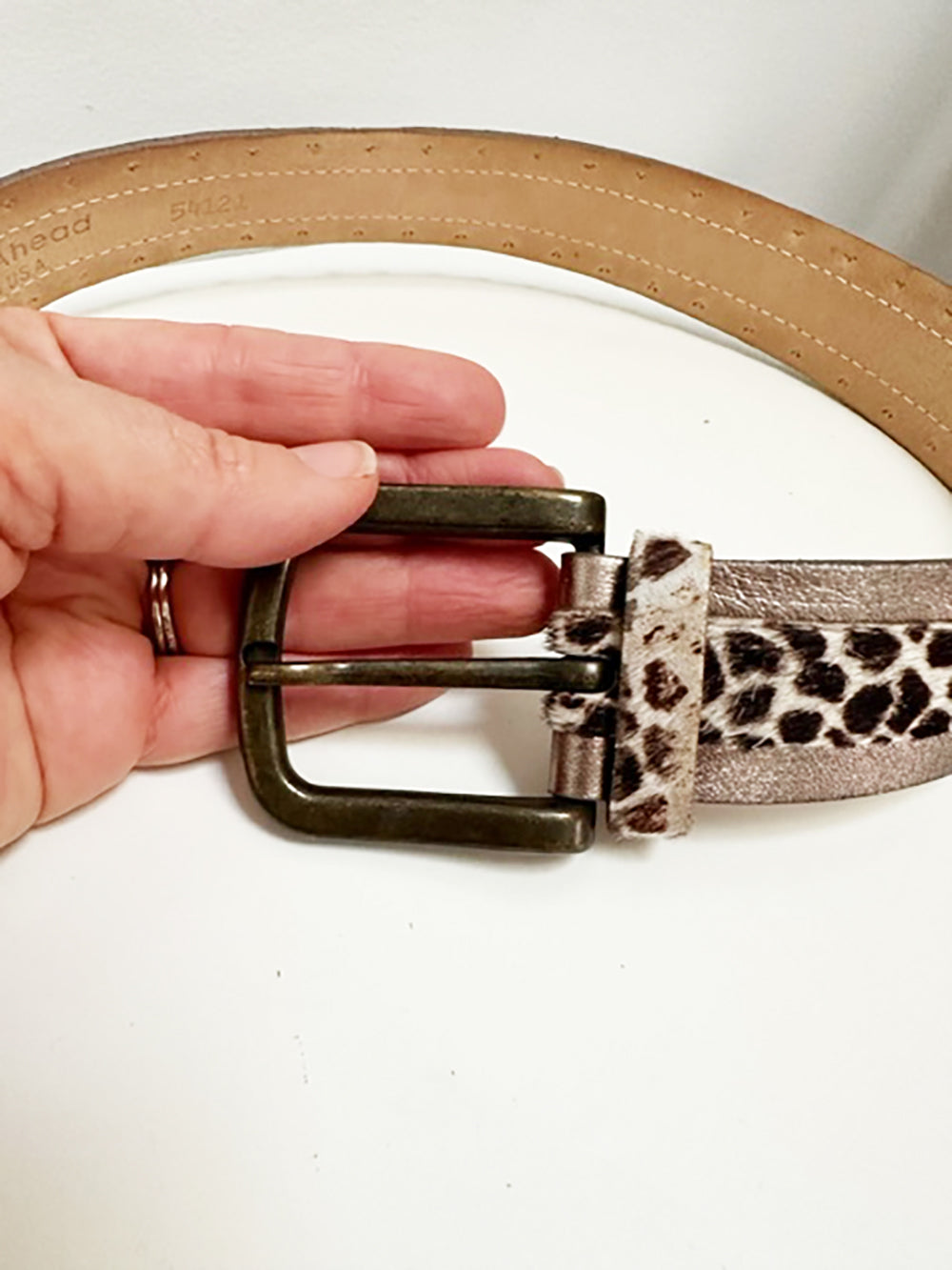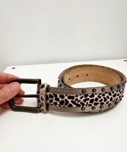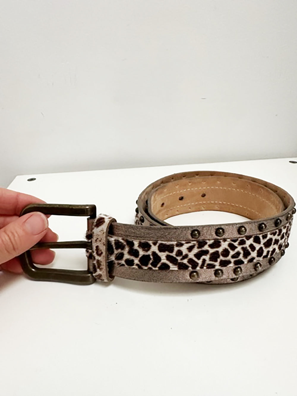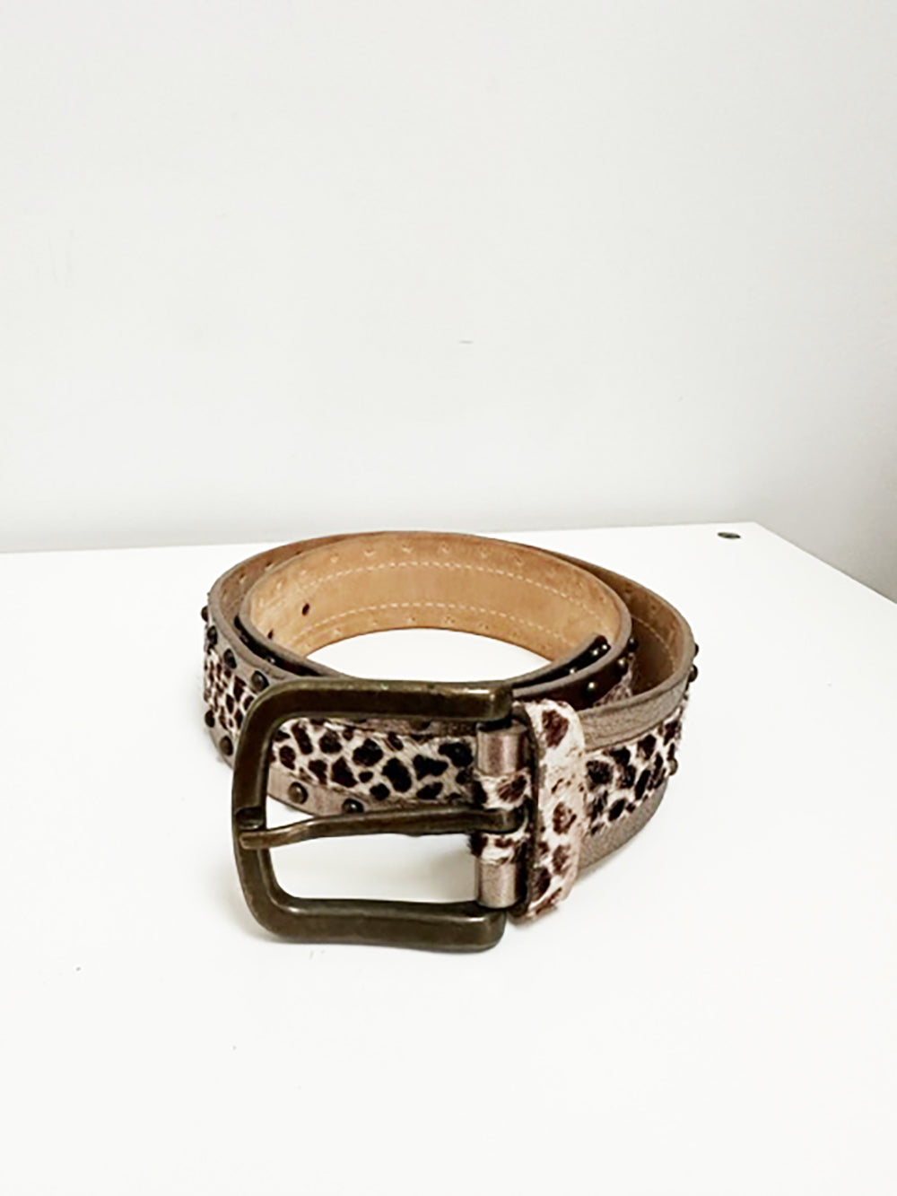 A stunning worn once in brand new condition belt from cult belt label Streets Ahead. Pony hair animal print, studs and metallic leather!