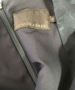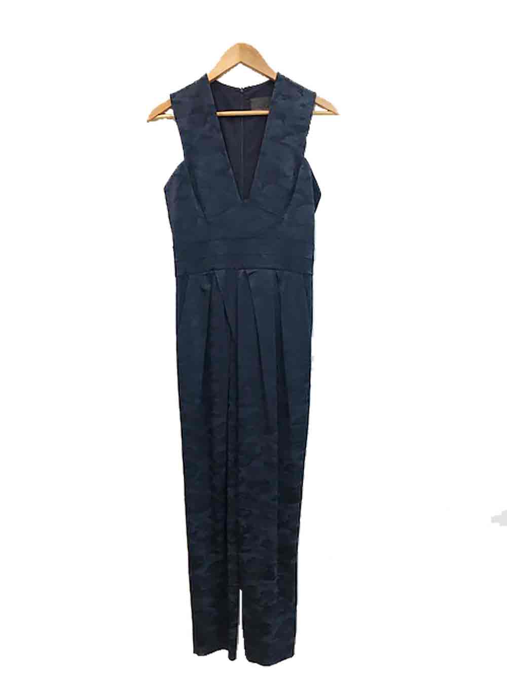 How cool is this!! Worn once brand new condition navy blue jumpsuit by designer label Ginger & Smart! It features a great camouflage weave which is subtle and striking at the same time! The fabric has stretch. It has a V-neckline front and back and lined, hidden back zip, cool waist detail and is super flattering!!! A tapered leg and side pockets completes the look!