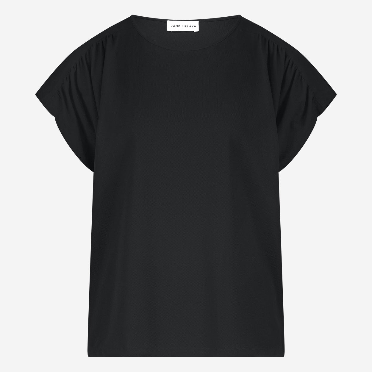 The Britta Structure Top is a sleek and modern design crafted from technical jersey with a textured structure. This lightweight and breathable top features gathered shoulder details, creating a soft yet sophisticated silhouette. Its wrinkle-free, easy-care fabric makes it a versatile and practical choice for both casual and polished outfits. Effortlessly chic and comfortable, the Britta Top is a wardrobe essential.