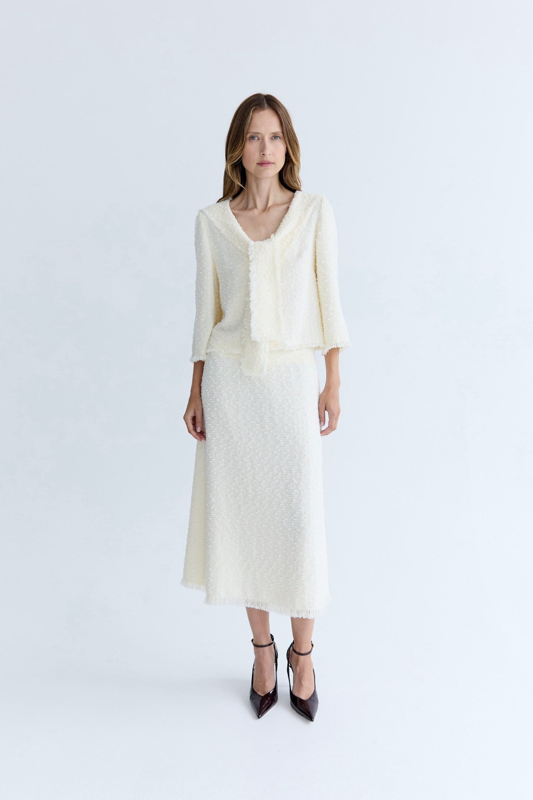 The?EDER BY ANNA Celine Skirt in Butter Cream Tweed.