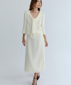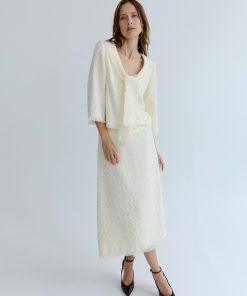 The Celine Skirt in butter cream tweed is a simplistic A-line skirt that effortlessly takes you from desk to dine. Comfortable yet elegant, it��s the perfect piece for any occasion that requires a balance of ease and sophistication.
